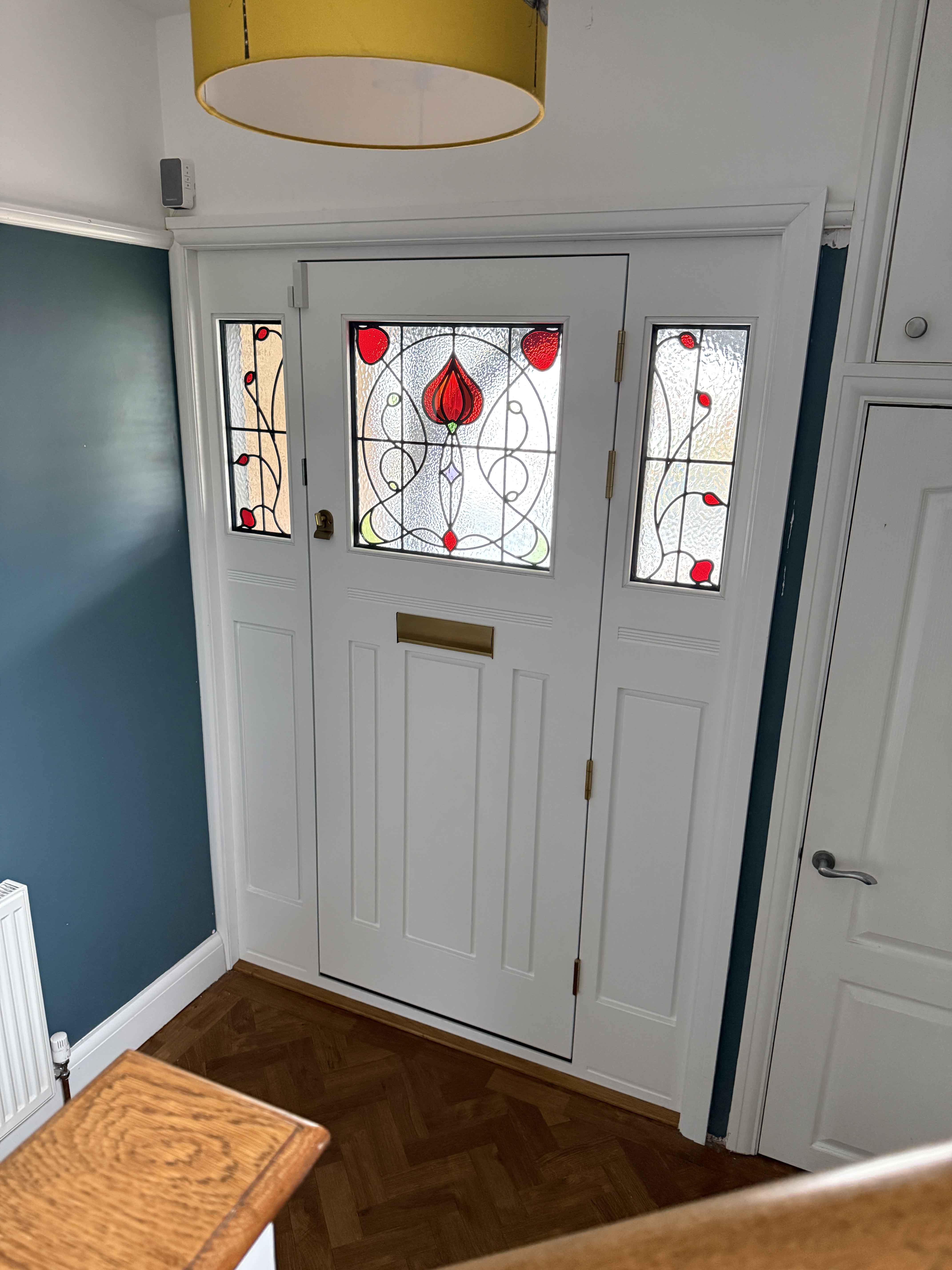 Our Geometric Art Nouveau doors combine decorative detail with structured elegance. Featuring stylised glass patterns and refined framing, they offer a bold yet balanced interpretation of Art Nouveau design, crafted for lasting beauty and performance.